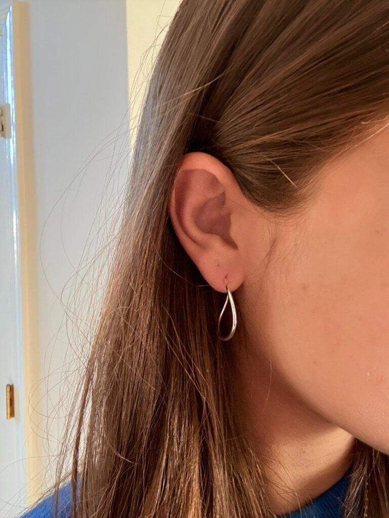 Handcrafted in 925 sterling silver, the Tali Hoops are a study in quiet elegance. Each curve is shaped by hand, giving them their soft, fluid silhouette— delicate, minimal, and effortlessly timeless.